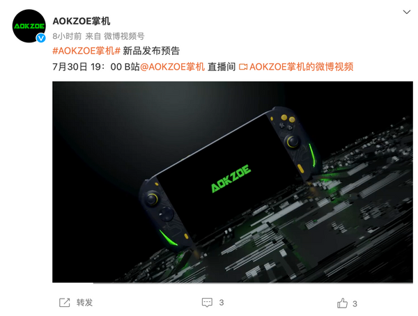 The AOKZOE A1 handheld equipped with R7 6800U announced that it will be released at 19:00 on July 30, and pre-sale will start at the same time. Officially, the standard version of the handheld weighs 668 grams and is equipped with pure aluminum heat sinks and pure copper heat pipes to ensure efficient heat dissipation and is compatible with Windows 11 and SteamOS.