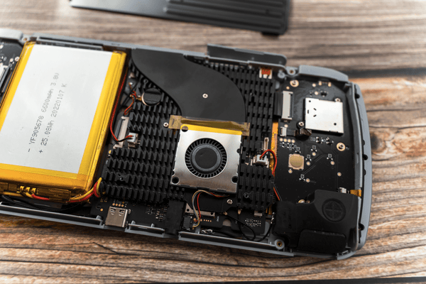 Take out the TF+SIM card slot, unscrew the four screws on the back, and use the plastic tabs to gently pry open the back cover along the sides. It can be seen that the heat dissipation part is still a thin fan + large-area aluminum sheet, and the heat dissipation configuration is exactly the same as that of the Odin Base/Pro. However, from an engineering point of view, the effect of heat pipe + copper heat sink will be better. When upgrading products with stronger performance in the future, I hope AYN can strengthen the heat dissipation configuration.