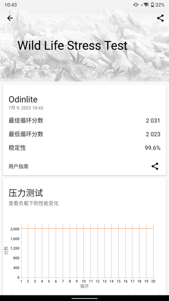 In the stress test part of 3DMark Wild Life, because Odin Lite is equipped with active heat dissipation, coupled with the good power consumption performance of the 6nm process, the stability of the stress test under full blood output is as high as 99.6%.