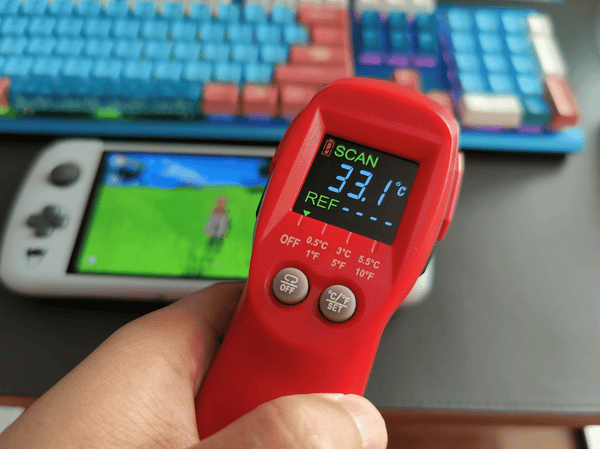 The temperature is partly due to the excellent energy consumption ratio of the Dimensity 900 (as well as the weaker CPU and GPU), as well as the active heat dissipation of Odin. The highest temperature on the front of the fuselage was 33.1 degrees and the highest temperature on the back was also measured at a room temperature of 25 degrees for 30 minutes. Only 35.9 degrees. Compared with the 40+ temperature of mobile phones, the advantages of playing Genshin with a handheld console with active cooling are quite obvious. However, the SOC core temperature reached a maximum of 75 degrees within 45 minutes. Related (although the use of large-area aluminum blocks provides sufficient heat capacity, it is more efficient to use copper heat pipes for SOC locations).