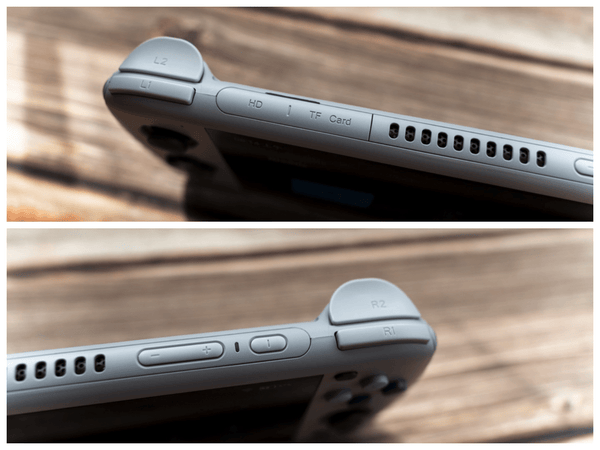 A complete L1/L2/R1/R2 is placed on the side, and L2/R2 supports both digital and analog modes, which can well support racing games. Below the top cover is the Micro HDMI interface and TF+SIM card slot. When using the Micro HDMI interface, it can output 1080P/720P images.