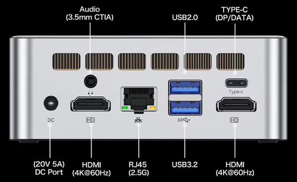The NucBox M3 doesn't compromise on connectivity, offering a comprehensive array of ports to meet your diverse needs. The mini PC comes with the following ports: