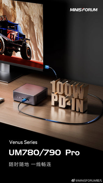 These Mini PCs are equipped with USB-C ports that allow for a convenient one-line connection. With this feature, users can connect a compatible monitor to the Mini PC using a USB-C cable. This connection not only enables video transmission but also provides 100W Power Delivery (PD) power supply. This means that users can simultaneously power their Mini PC and transmit video data to the connected monitor using just a single USB-C cable. This streamlined setup eliminates the need for multiple cables and simplifies the overall user experience.
