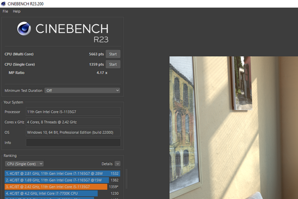 Next up is the more professional Maxon's Cinebench R23. This test is to complete the rendering of a complex image through the CPU alone without the use of the GPU, so as to measure the performance of the CPU under stressful tasks. The Beelink GTI 11's CPU single-core score and multi-core score are both good results.