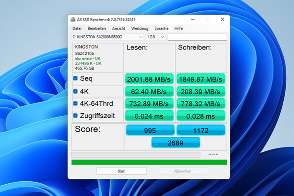 As mentioned in the previous article, this small PC is equipped with Kingston's m2.NVMe solid state drive, which is very fast. The CrystalDiskMark and AS SSD scores also make good arguments.