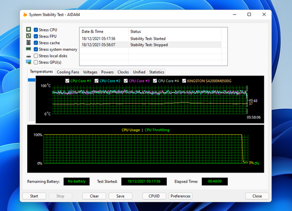 In the nearly one-hour AIDA64 CPU full load test, the temperature of the four CPU cores remained within 70°C, and the system's high temperature alarm was not triggered. However, it should be noted that the fan of GTI11 is not particularly quiet during high load operation, at least in a quiet environment, we can clearly hear the sound of the fan blades rotating. However, this noise is generally not too high, and it will not cause continuous trouble to our use.