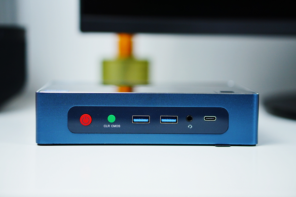Beelink GTi 11 is equipped with numerous interfaces. There are two USB3.0 ports on the front of the fuselage, a multi-function Type-C port, and a 3.5mm audio port compatible with a microphone. In addition to this, there is a CMOS reset hole and a power key with built-in LED status indicators.