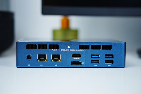 The interface on the back of the fuselage is more abundant, including two USB3.0 interfaces, two USB2.0 interfaces, two Gigabit Ethernet ports, one HDMI2.0 interface, one DP1.2 interface, and one DC power interface. It is a little regrettable that the GTI11 is not equipped with a memory card slot, but thanks to the rich USB interface, it is not difficult to insert a card reader.