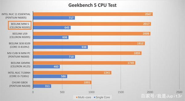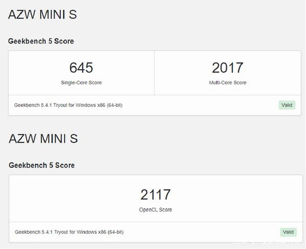 In the cross-platform Geekbench 5 test, the Mini S's CPU single-core score was 645, multi-core score was 2017, and OpenCL score was 2117. The CPU multi-core performance was significantly higher than that of the zero-cut SEI8 equipped with the i3-8109U processor. 11 Atlas Canyon is not far behind.
