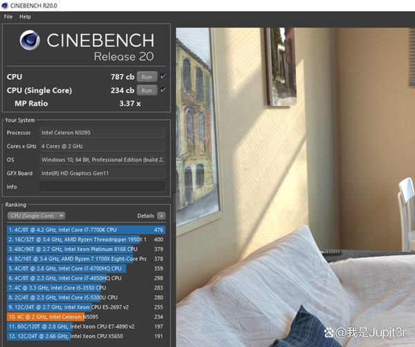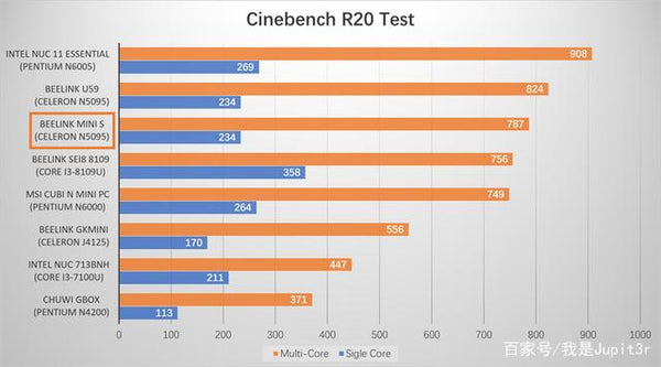 The results of Cinebench R20 are similar to the logic of Geekbench 5. The CPU multi-core score of Mini S is also higher than SEI8, slightly behind the NUC 11 Essential equipped with Pentium N6005.