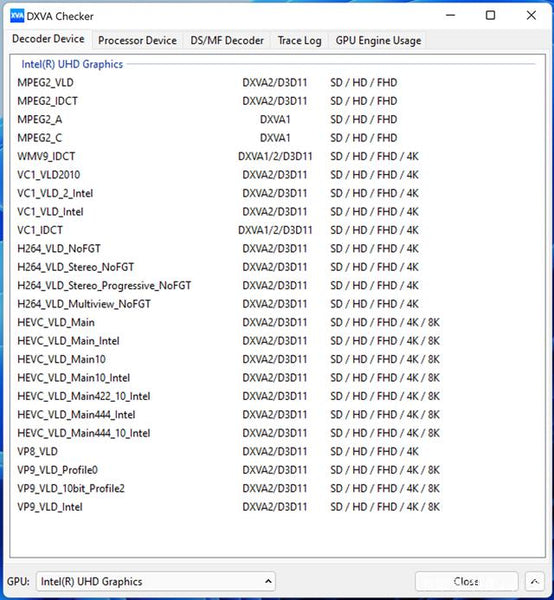 This Mini PC is great for use as an HTPC or a home multimedia center, and you can connect it to a monitor and a TV at the same time via two HDMI cables. Judging from the data read by the DXVA Checker, the UHD Graphics core display used by the Mini S supports hard decoding of most 4K/8K videos, which has a lot of advantages compared to the Radeon Vega 8 carried by the SER4.