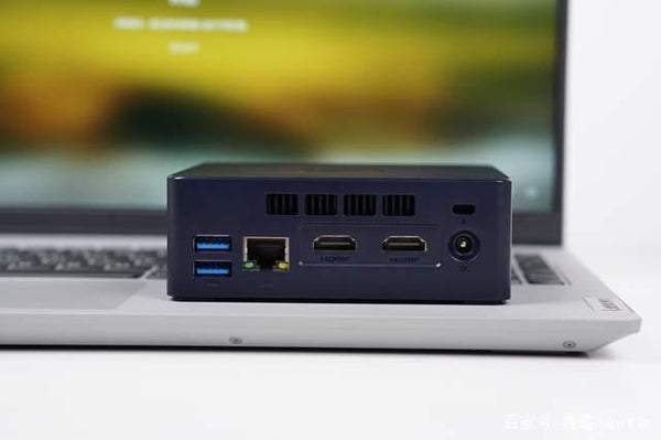 The Mini S body provides 4x USB3.0 ports, 2x HDMI 2.0 ports, 1x RJ45 Gigabit Ethernet port, 1x3.5mm audio port, and 1x DC power port. Compared with U59, Mini S lacks a multi-function Type-C interface, so it is impossible to achieve three-screen simultaneous output. However, for 99% of users,1-2 displays are enough. The fuselage has built-in aluminum plates and fans, and large-area cooling holes are also arranged on the sides and back of the casing to help the air circulate freely.