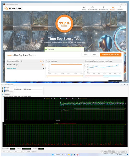 Because Beelink SEi12 is equipped with large-area cooling holes on four of the six sides of the fuselage, and it also uses dual fans, copper tubes, aluminum sheets and other multiple heat dissipation internally, so the overall operation is relatively stable. In the 3DMark Time Spy stress test, the final score is 99.7%, which is considered the first echelon level among the Mini PCs and laptops tested by Jupit3r. In the stability test of AIDA64, within 1 hour of full-load operation of the CPU, the temperature of none of the cores exceeded 90°C, and the maximum frequency reduction of the CPU was also controlled within 15%.