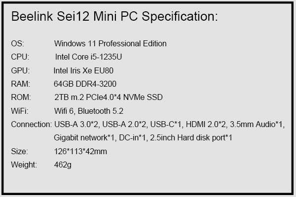 Beelink SEi12 equipped with i5-1235U Processor Hands-on Review