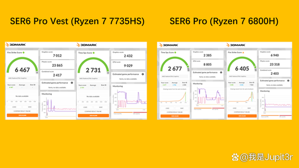 The SER6 Pro is equipped with an AMD Ryzen 7 7735HS processor, which is based on TSMC's 6nm process technology, has 8 Zen3+ CPU cores, 16 threads, and a maximum operating frequency of 4.75GHz. The integrated graphics card is the powerful AMD Radeon 680M, with 12 built-in RDNA2 graphics cores, 768 shaders, and a running frequency of 2200MHz. The performance is not inferior to that of Nvidia GeForce GTX1050TI discrete graphics card. Compared with the 6800H equipped in SER6 Pro, the only difference between 7735HS and 7735HS is that the maximum acceleration frequency is 0.05GHz higher, but how meaningful is the difference in this parameter for performance release? Let's just look at the running score first.