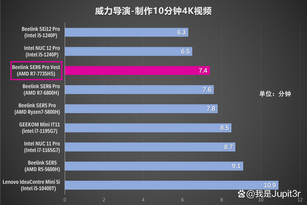 However, the video encoding capability of AMD core display is still far behind that of Intel core display, so the time-consuming of SER6 Pro in the video production stage is longer than that of the two Mini PCs that use i5-1240P.