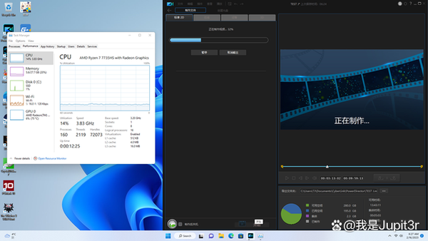 During video encoding, the CPU and GPU occupancy rate of SER6 Pro is always relatively low, indicating that the hardware acceleration is not thorough enough. But the advantage is that we can continue to use the computer to perform other tasks smoothly at this time, so we don't have to wait until the progress bar of video encoding is finished.