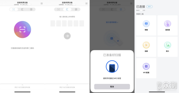 The NFC screen projection operation of the display is very convenient. You only need to touch the NFC module of the mobile phone to the NFC tag of the display base, and the connection window can pop up. Click in turn to realize the screen projection.