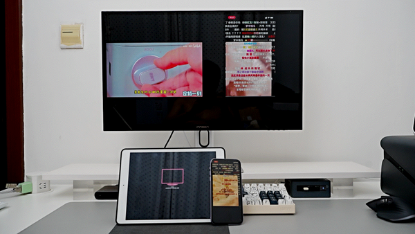 The INNOCN 27P1U Monitor supports simultaneous projection of 4 devices, so that you can watch two videos at the same time, and the two pictures do not affect each other, and they are very smooth and not stuck. Of course, you can also use the tablet to project the code words, and use the mobile phone to project the screen to watch the video, in short, the playability is very high.