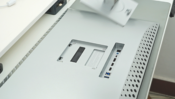 The connection between the stand and the Monitor is even simpler, just insert the stand into the card slot on the back of the Monitor and it will be automatically locked. When disassembling, you only need to pull the buckle under the bracket to separate.