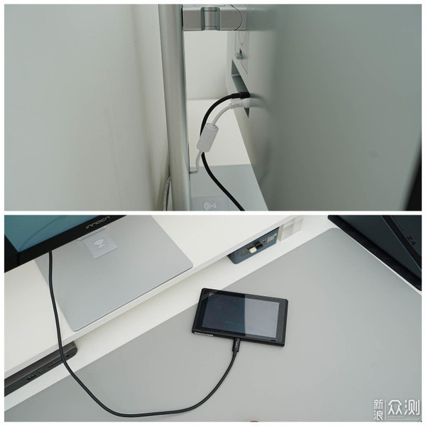 The INNOCN 27P1U Monitor meets these needs. It includes a Type-C interface, a DP interface, two HDMI interfaces, a USB-B interface, two USB-A interfaces, and an audio interface, allowing me to connect at the same time. multiple devices. Moreover, the Monitor stand also has a wire harness hole to avoid clutter of wires, and the base also supports NFC screen projection, which will be discussed in detail later.