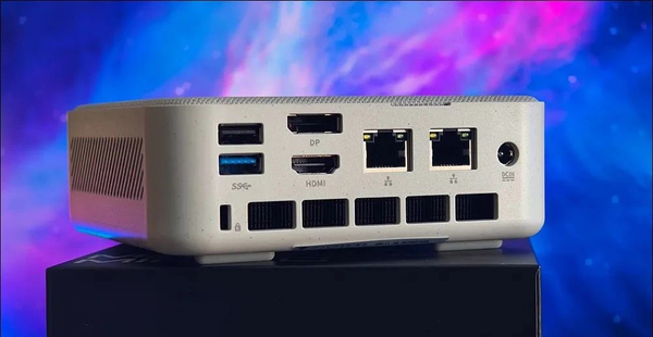 The back of the fuselage provides a power jack, 2 2.5G network ports, HDMI2.0 and DP, USB-A3.2 Gen2 and USB2.0 interfaces. There is also an anti-theft lock hole next to the air outlet at the bottom, which can prevent the host from being stolen when used in public places such as offices.