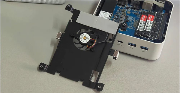 It can be seen that inside the Creator Mini II, a metal bracket equipped with a fan has been added. If you remove the bracket, you can see the memory and hard drive hidden under it.