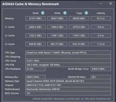 This Mini PC comes standard with 2 Jintek DDR5-5600 high-frequency memory modules. The measured performance is as shown in the figure, and the performance is pretty good.