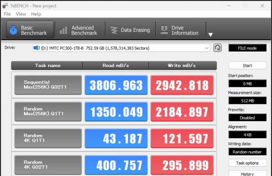 The standard hard drive comes from Yangtze Storage. The model is PC300 with 1TB capacity. It is an entry-level PCIe 4.0 SSD with sustained read and write speeds of 3800MB/s and 2940MB/s respectively.