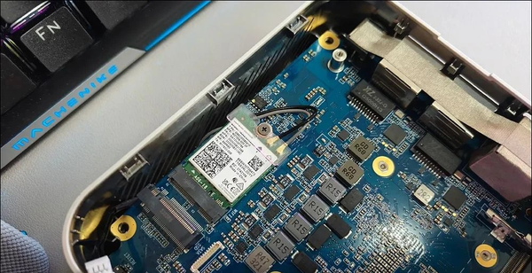 Below the hard drive is the Intel AX210 Wi-Fi 6E wireless network card, which has better performance than the RZ608 commonly used in competing products. With the help of the fan bracket, there is no need to worry about the heat dissipation problem of the network card and hard drive stack design.