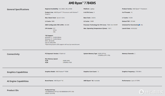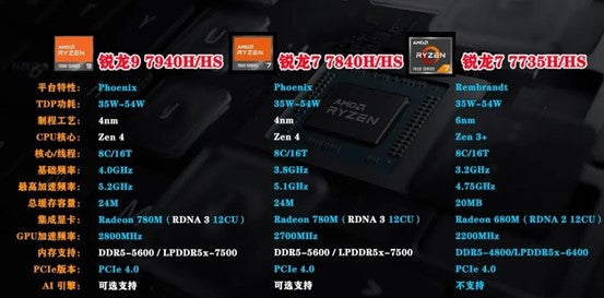 The biggest selling point of the new Mechrevo S Mini PC is the upgrade to AMD’s latest Ryzen 7 7840H processor. Yes, that’s right, it’s 7840H not 7840HS. However, the H series is customized by AMD to facilitate the promotion of the domestic market. Judging from the detailed parameter comparison on AMD's official website, H and HS are essentially the same chip, so there is no need to take it seriously.