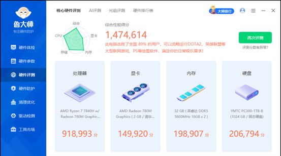 The subsequent step involves the targeted benchmarking procedure. The latest iteration of Mechrevo S has demonstrated an impressive performance, attaining a remarkable score of 1.47 million in the Master Lu test. This accomplishment positions it ahead of 89% of computer users within the nation, showcasing its exceptional capabilities and surpassing expectations.
