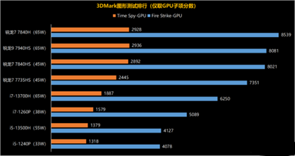 The 3DMark graphics test is the advantage battlefield of the Ryzen platform. With the blessing of dual-channel memory, the running score data of New Mechrevo S even surpassed the Ryzen 9 7940HS we tested earlier. The reason may be that the gain of the upgraded official version driver can crush the 13th generation Core-integrated Iris Xe. The 96-core display is infinitely close to the level of the early GTX 1650.