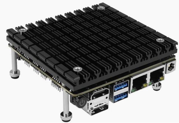 Für eine optimale Kühlung verfügt das X86-P5 über ein Aluminiumgehäuse mit Kühlrippen an der Oberseite, die die Wärme effektiv ableiten. Nutzer haben zudem die Möglichkeit, über vier vorhandene Löcher einen Lüfter an der Oberseite des Gehäuses anzubringen. Das System bietet zwar zwei USB-2.0-Anschlüsse für eine optionale Erweiterung auf der Rückseite, die Geschwindigkeit dieser Anschlüsse ist jedoch auf 480 Mbit/s begrenzt. Die Abmessungen des X86-P5 von 112 x 100 x 40 mm (4,4 x 3,9 x 1,6 Zoll) unterstreichen sein kompaktes Design und machen es für verschiedene Umgebungen geeignet.