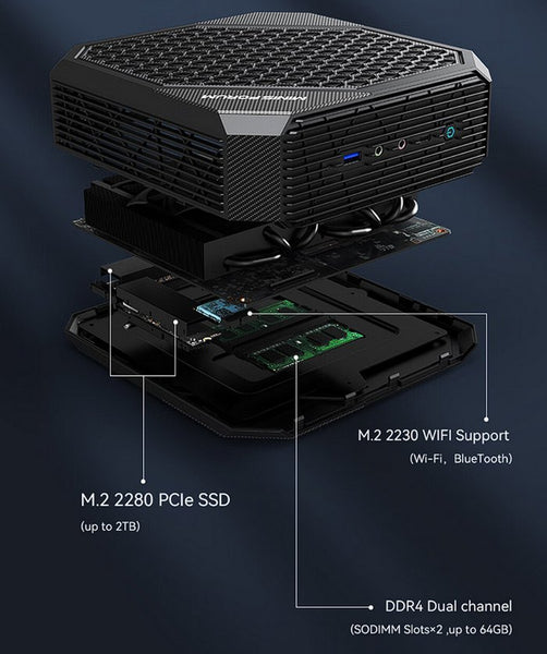 Der HX77G glänzt vor allem durch seine Gaming-Fähigkeiten. Ausgestattet mit einer dedizierten Radeon RX 6600M Grafikkarte ist dieser Mini-PC speziell für Gamer konzipiert. Er ist zwar nicht für hochauflösendes 4K-Gaming optimiert, kann aber die meisten AAA-Titel auch in niedrigeren Auflösungen problemlos ausführen und sorgt so für flüssiges und angenehmes Spielerlebnis.