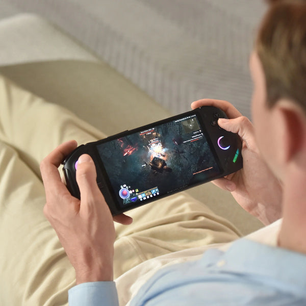 Gamer lieben individuelle Anpassungsmöglichkeiten, und der OnexPlayer F1 Handheld versteht das. Er verfügt über eine RGB-Atmosphärenwippe für die passende Stimmung und zwei programmierbare Tasten für In-Game-Makros, die Ihnen in jeder Situation die Oberhand geben. Auch die Anschlussmöglichkeiten sind bei diesem Handheld zahlreich. Mit USB 4, USB-A, einem MicroSD-Kartensteckplatz und mehr können Sie Ihre Lieblingsperipheriegeräte problemlos anschließen oder Ihre Speicheroptionen erweitern.