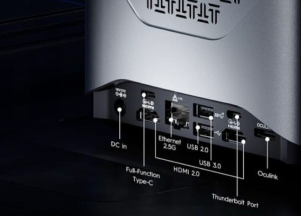 Der Mega Mini Gaming G1 ist mit einer umfassenden Auswahl an Anschlüssen und Konnektivitätsoptionen ausgestattet und eignet sich daher für verschiedene Setups und Peripheriegeräte. Zu den wichtigsten Funktionen gehören: