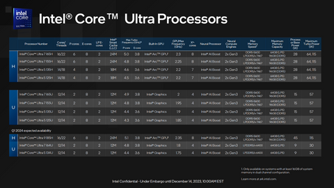 Laut IT Home sind die mobilen Intel Core Ultra-Prozessoren nun auf dem Markt. Die ersten Modelle umfassen die U- und H-Serie mit einem Basisstromverbrauch von 15 W bzw. 28 W. Die U-Serie verfügt über 2+8+2 Kerne und bis zu 4xe-Core-Displays. Die H-Serie bietet bis zu 6+8+2 Kerne und bis zu 8xe-Core-Displays. Im ersten Quartal des nächsten Jahres wird Intel außerdem ein Ultra 9-Flaggschiffmodell mit 45 W Basisstromverbrauch, 6+8+2 Kernen und 8xe-Core-Displays veröffentlichen.