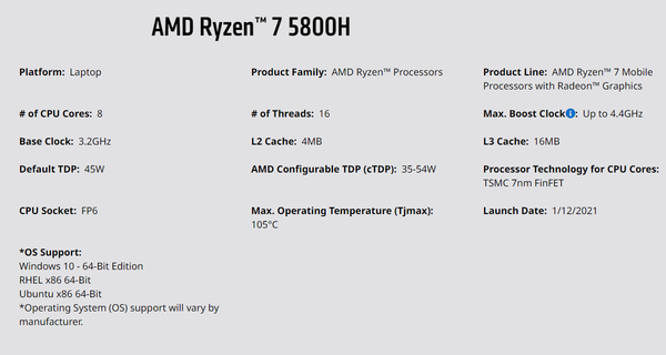 Der Ryzen™ 7 5800H nutzt AMDs relativ neue Zen 3-Architektur. Diese wurde in ein neues, einheitliches Verbunddesign umgewandelt, das 8 Kerne und 32 MB L3-Cache in einer Ressourcengruppe integriert. Die Latenzen zwischen Kernen und zwischen Kernen und Cache werden durch die On-Chip-Anordnung der Ressourcen deutlich reduziert, um die Kommunikationszeit zu minimieren. Diese Verbesserung bietet große Vorteile für latenzempfindliche Aufgaben wie Computerspiele, da Aufgaben nun doppelt so schnell direkt auf den L3-Cache zugreifen können wie beim ursprünglichen „Zen 2“. Der neue 7-nm-Prozess von TSMC sorgt zudem für ein besseres Energieverbrauchsverhältnis.