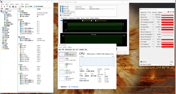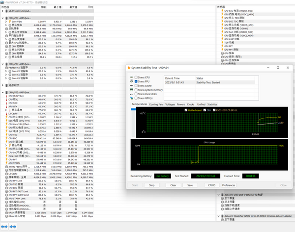 Anschließend führen wir die beiden oben genannten Programme gleichzeitig aus, um den maximalen Druck zu simulieren, und lassen den Ofen 1,5 Stunden lang laufen. Schließlich sinkt die CPU-Volllast auf 45 W, die Temperatur beträgt 86 Grad, und die GPU bleibt bei 100 W und 70 °C stabil. Das ist nicht groß, was zeigt, dass die Heizbereiche der beiden relativ unabhängig voneinander sind. Besonders beeindruckend ist, dass der HX80G selbst beim doppelten Backen recht leise ist. Ich muss sogar mein Ohr nah heranhalten, um sicherzugehen, dass der Lüfter tatsächlich läuft.