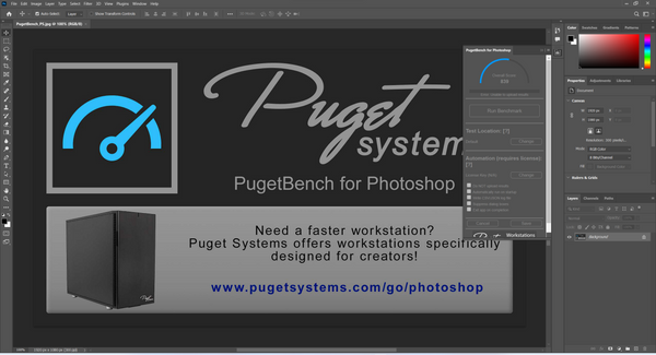 In der häufig verwendeten Grafikdesignsoftware PS verwenden wir zum Testen auch den Puget Benchmark. Das Endergebnis beträgt 839 Punkte und es können auch einige komplexere Spezialeffekte erzeugt werden.