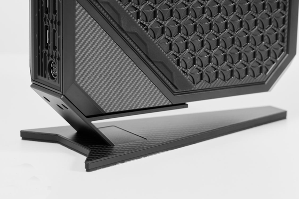 Im Lieferumfang ist eine Halterung aus Kohlefaser enthalten, die mit Schrauben an der Unterseite des Rumpfes befestigt werden kann, um den gesamten Rumpf zu stützen. Dies spart nicht nur mehr Platz auf dem Schreibtisch, sondern verbessert auch die Wärmeableitung des Gehäuses.