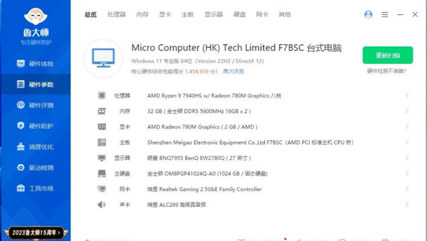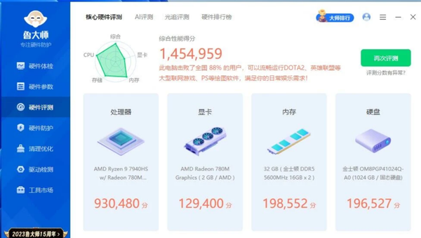 Nach dem Hochfahren führen wir zunächst eine Punkteauswertung durch. Mit der neuesten Version von Master Lus Laufscore erreichen wir mühelos einen beeindruckenden Laufscore von 1,45 Millionen Punkten. Eine detaillierte Aufschlüsselung dieses Scores finden Sie in der nebenstehenden Abbildung. Besonders hervorzuheben ist die CPU (Zentraleinheit) mit einem Score von 930.000 Punkten, während die Grafikkarte mit über 129.000 Punkten eine solide Leistung zeigt. Der Arbeitsspeicher erreicht einen Score von 198.000 Punkten, dicht gefolgt von der Festplatte mit 196.000 Punkten. Diese Konfiguration dürfte der Ausstattung des aktuellen Flaggschiff-PCs entsprechen.