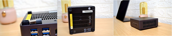 Effektive Wärmeableitung ist ein entscheidender Aspekt für jeden Mini-PC, und der UM790 Pro meistert diese Herausforderung mit Bravour. Die sorgfältige Konstruktion von Minisforum zeigt sich in den großzügigen, strategisch platzierten Lufteinlässen an den Seiten und der Unterseite des Gehäuses, ergänzt durch eine durchdachte Wärmeableitungsöffnung auf der Rückseite. Das durchdachte Luftkanalsystem sorgt für einen optimalen Luftstrom und somit für effiziente Kühlung. Besonders hervorzuheben sind die erhöhten Fußpolster an der Unterseite des Gehäuses, die zu einer verbesserten Luftzirkulation beitragen und Minisforums Liebe zum Detail für höchste Wärmeleistung unterstreichen.