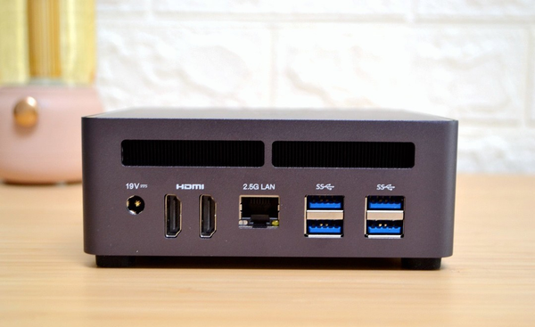 Auch die Schnittstellen auf der Rückseite überzeugen: Der UM790 Pro überzeugt mit seiner umfassenden Auswahl. Die Rückseite des Mini-PCs verfügt über einen Stromanschluss, zwei HDMI-2.1-Anschlüsse, einen 2,5G-RJ45-Netzwerkanschluss und vier USB-A3.2 Gen2-Schnittstellen (10 Gbit/s). Die dualen HDMI-2.1-Anschlüsse ermöglichen den gleichzeitigen Anschluss von zwei externen Monitoren. In Kombination mit den beiden USB-4-Anschlüssen an der Vorderseite können sogar vier externe Monitore angeschlossen werden – ideal für Multitasking-Enthusiasten und Profis.