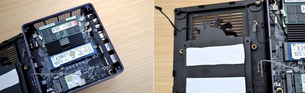 Bei genauerer Betrachtung des Demontageprozesses erweist sich die Vorgehensweise als unkompliziert. Durch Entfernen der vier Höhenpolster vom Sockel werden die Schrauben sichtbar, die das Gerät zusammenhalten. Nach der Demontage wird ein auffälliges Merkmal sichtbar: Das UM790 Pro verfügt über einen aktiven Lüfter, der in der Unterseitenabdeckung untergebracht ist. Ein neuartiges Cold Wave 2.0 Flüssiggold-Kühlsystem ziert die CPU-Oberfläche und deckt auch Festplatten und Speichermodule ab. Diese umfassende Kühllösung unterstreicht Mingfans sorgfältigen Ansatz bei der Lösung thermischer Probleme dieser Konsole. Im weiteren Verlauf der Analyse konzentriert sich der Fokus auf die praktische Wirksamkeit der Wärmeableitungsmechanismen nach dem Einschalten der Konsole.