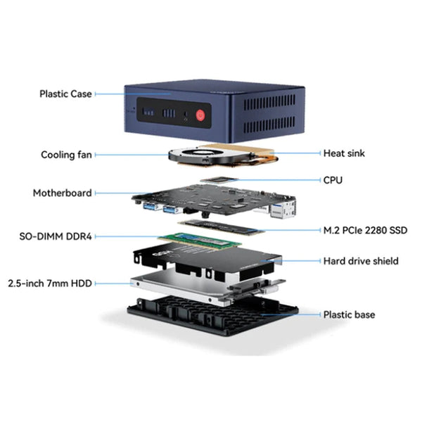 The Mini S12 offers an improved heat dissipation feature compared to its predecessors. It is equipped with a large-diameter silent CPU fan, a copper pipe, and a dedicated SSD cooling shield, which work together to keep the system stable even when consuming 20W of power.