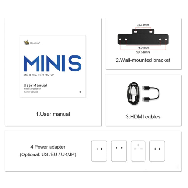 The Beelink Mini S12 will be available for purchase in the beginning of February 2023. It includes a 36W power adapter, VESA bracket, manual, and two HDMI cables as standard components from the factory.