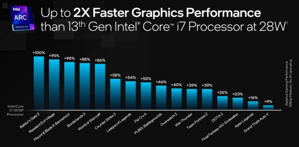 The Core Ultra series also boasts a significant boost in GPU performance, featuring the Alchemist Xe LPG iGPU. Supporting advanced features like XeSS and DX12 Ultimate, the GPU delivers up to double the performance of the 13th generation Core i7 chips at 1080p resolution.