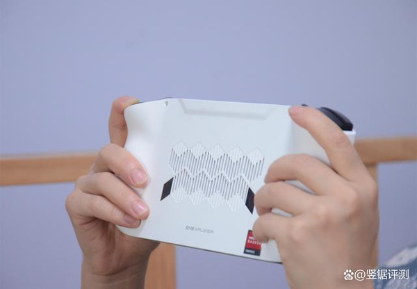For a handheld, the shell design can also be said to occupy a part of the overall experience. The shell of the OnexPlayer Mini Ryzen Edition adopts an advanced UV custom coating, which has a matte texture and will not hold the game for a long time. It is fingerprint-stained and non-slip. For people like me who are prone to sweating and oily palms, I like this shell design. At the same time, the hollow part on the back of the fuselage is the air inlet of the cooling fan, and the air outlet is located at the top.